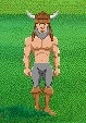 Human with no shirt and viking helmet