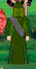 Caster in green robe and black baldric